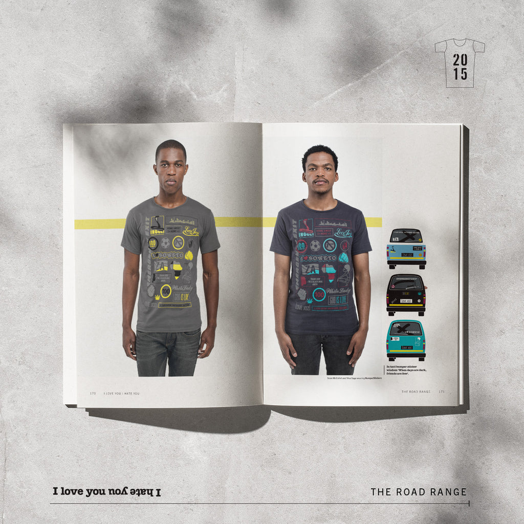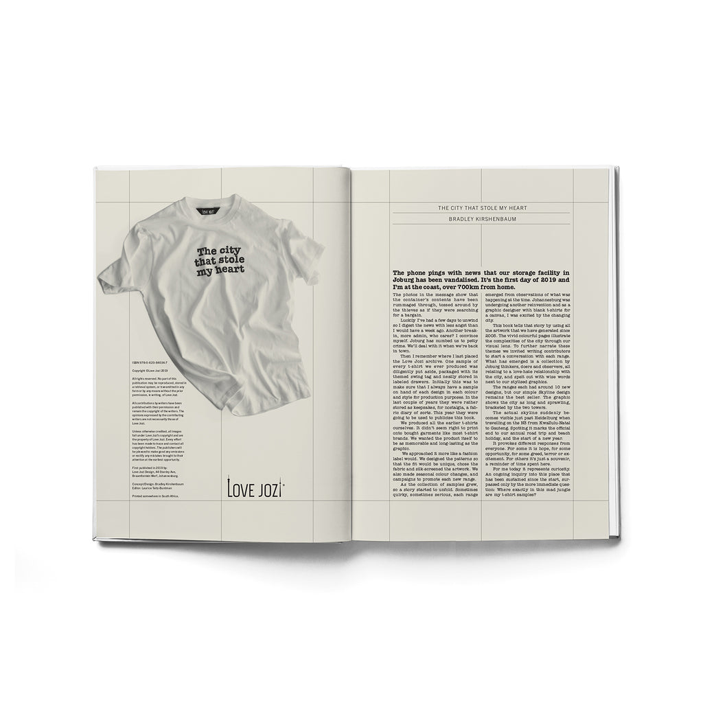 The first part is told through pictures. T-shirts are the core product of Love Jozi, and each range emerged from a specific context. The visuals – graphics and campaign material from the brand’s image archive – trace the city’s narrative through design.