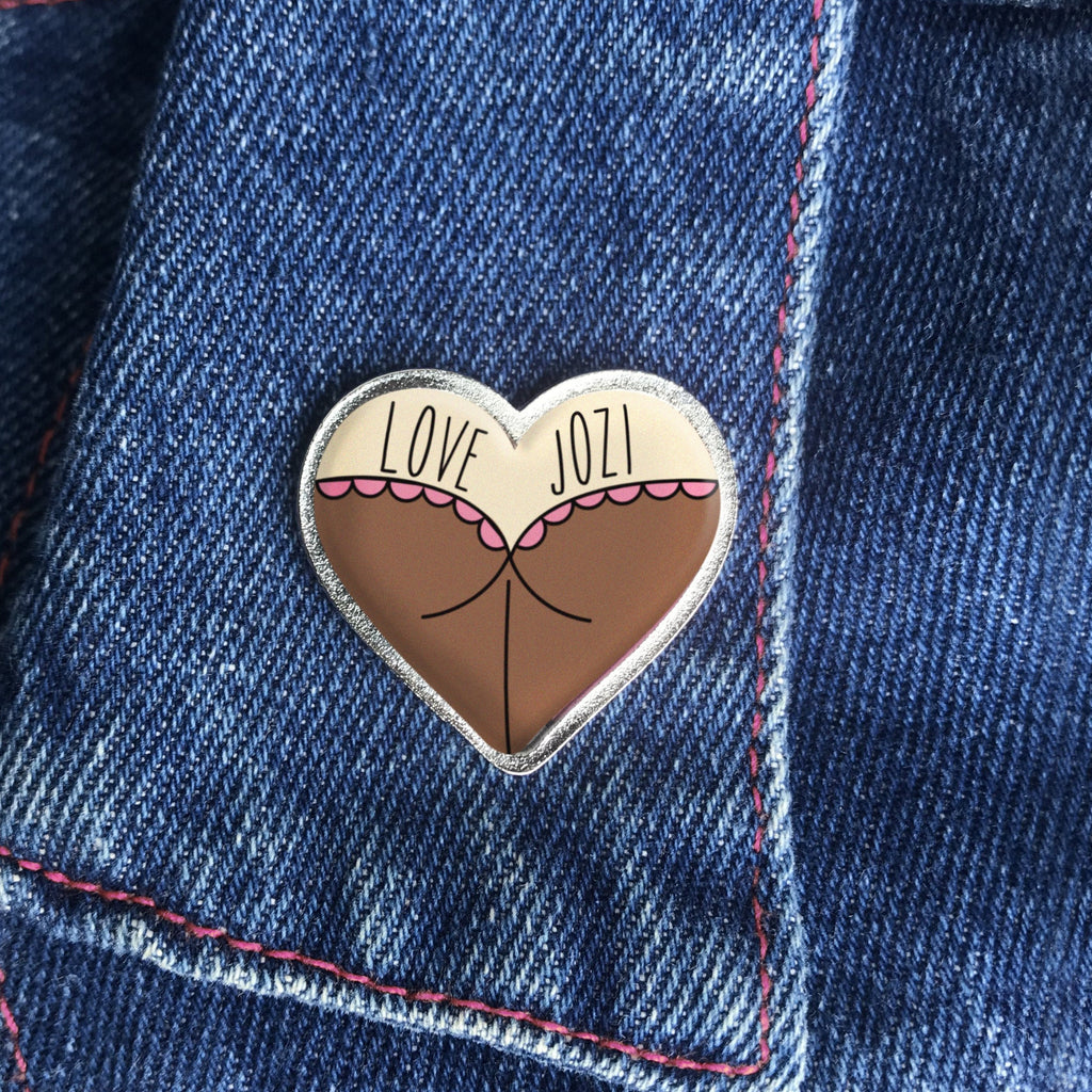 A reminder of your Love for Jozi on a heart shaped metal pin with a domed graphic insert. Other designs to choose are You Make Me Melt and It Is The Season.