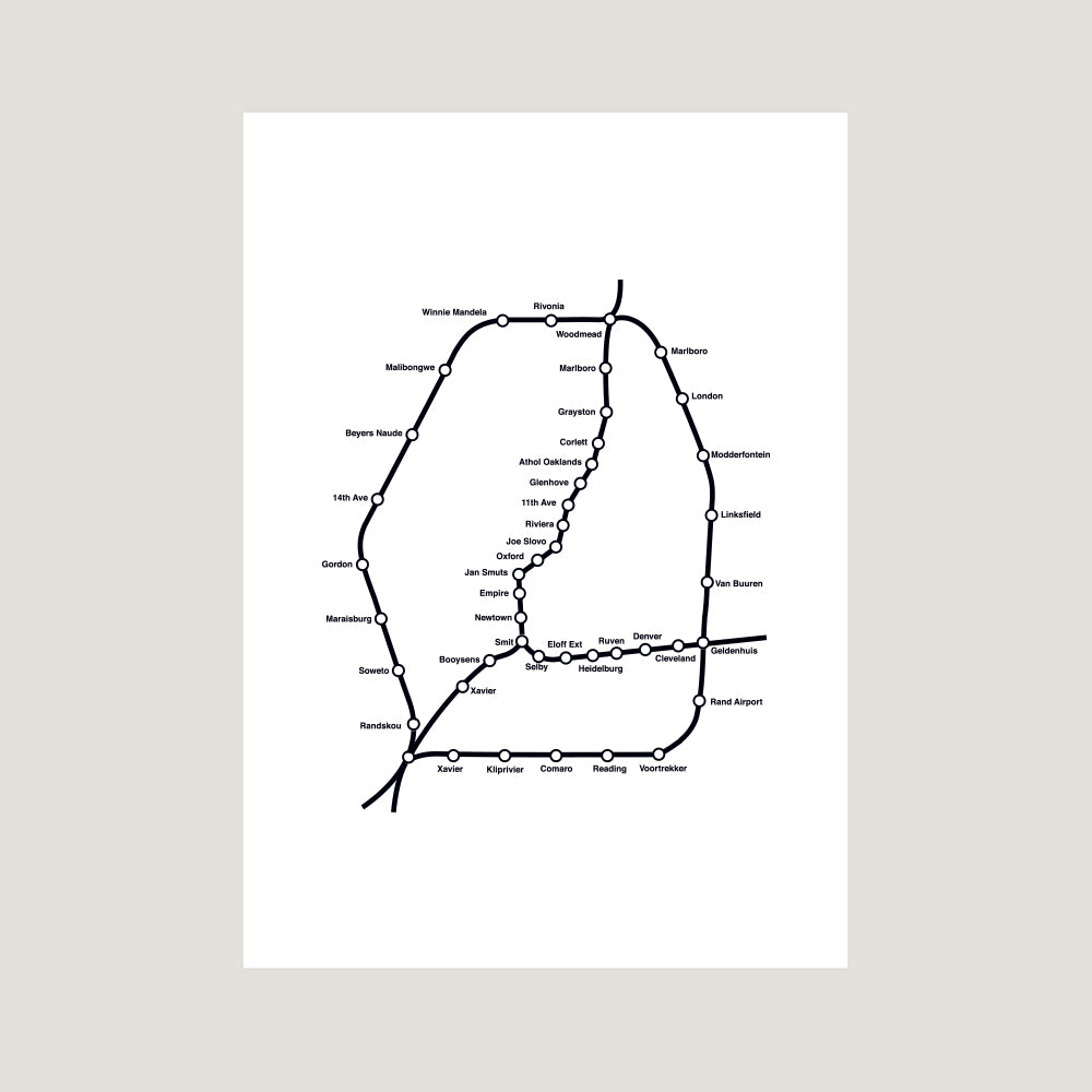 An infographic of Johannesburg's Ring Road including the intersecting M1 and M2 highways and their the on- and off-ramps.