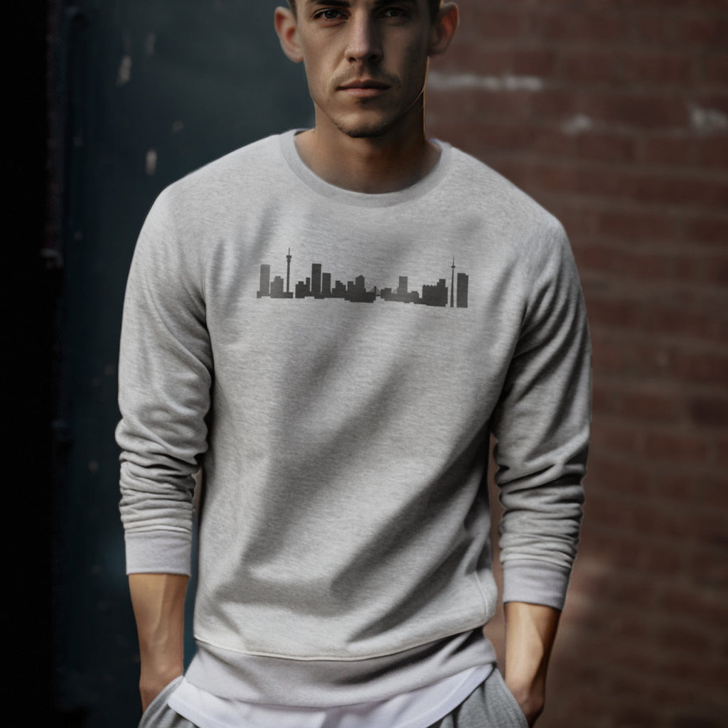 The LoveJozi Skyline graphic, our most famous design, on a classic fit sweater. Perfect for Joburg winter.